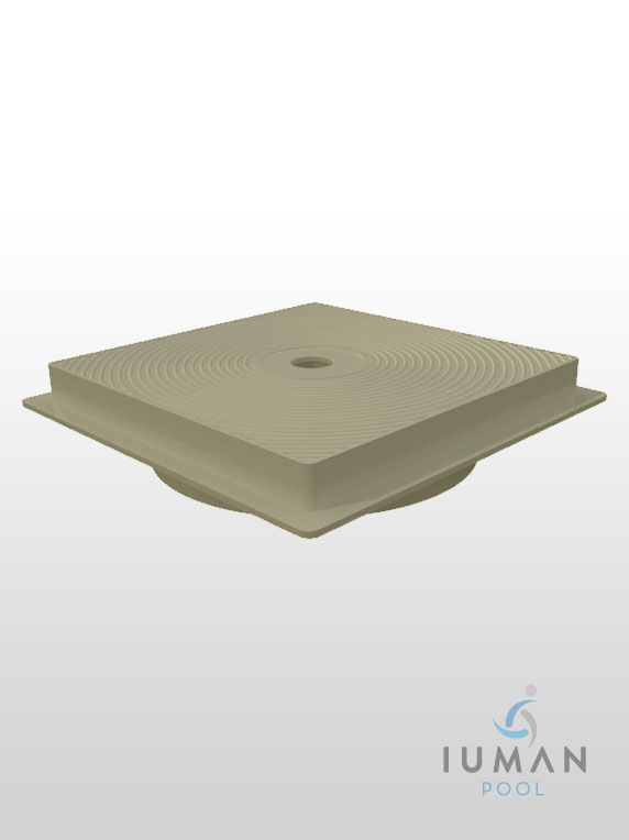 Tapa de skimmer de 17,5 litros circular en marco cuadrado color beige.